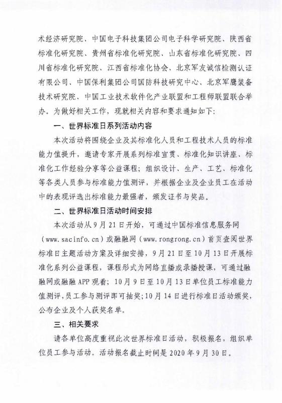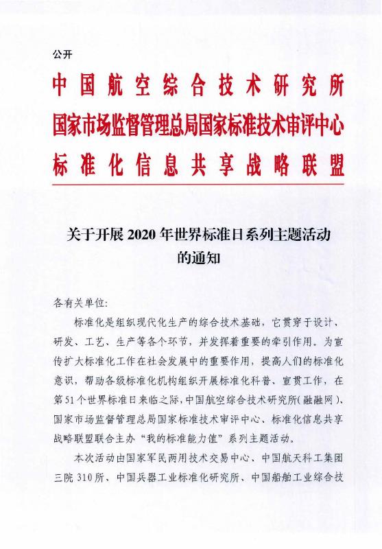 關(guān)于開展2020年世界標(biāo)準(zhǔn)日系列主題活動(dòng)的通知