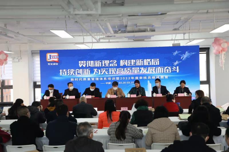 為貫徹落實(shí)上級(jí)機(jī)關(guān)的決策部署,全力推進(jìn)新時(shí)代質(zhì)量管理體系建設(shè)和成熟度評(píng)價(jià)工作,2022年3月26日至27日,北京軍友誠(chéng)信檢測(cè)認(rèn)證有限公司(以下簡(jiǎn)稱(chēng)軍友誠(chéng)信)舉辦了“新時(shí)代質(zhì)量管理體系”培訓(xùn)暨2022年度審核員繼續(xù)教育大會(huì)。根據(jù)北京市疫情防控要求,本次培訓(xùn)采取了線(xiàn)下和線(xiàn)上直播結(jié)合的形式。主會(huì)場(chǎng)設(shè)立在軍友誠(chéng)信新投用的辦公大樓,部分在京審核員參加現(xiàn)場(chǎng)會(huì)議,其他審核員通過(guò)線(xiàn)上實(shí)時(shí)直播形式參會(huì)和學(xué)習(xí)。國(guó)防科工局經(jīng)濟(jì)技術(shù)發(fā)展中心趙顯立主任助理出席會(huì)議,公司總部、各分公司及審核員等近650余人線(xiàn)上線(xiàn)下參會(huì)。