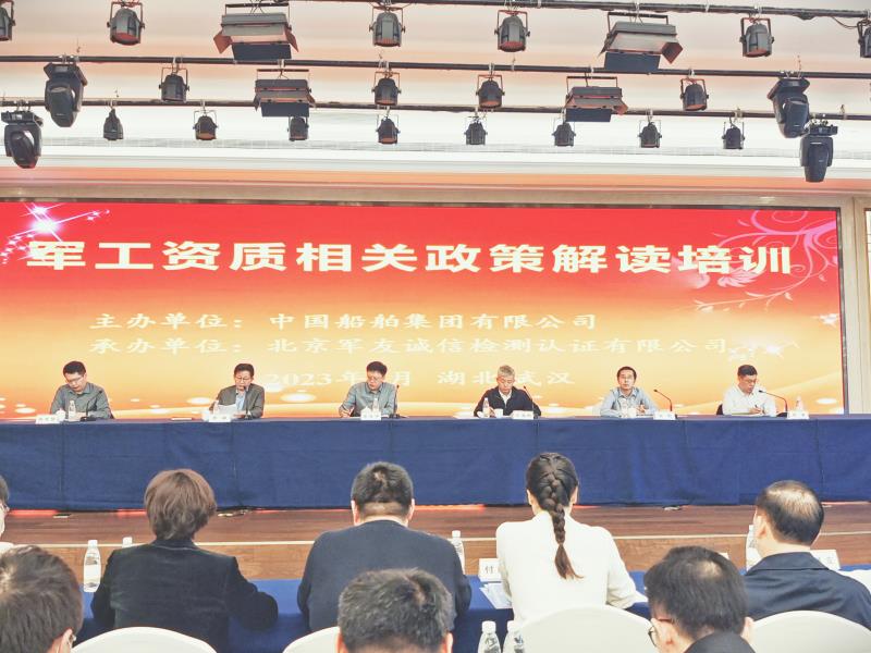 為加強(qiáng)對(duì)科研生產(chǎn)許可備案管理相關(guān)政策的理解和掌握,解讀軍品含稅采購(gòu)相關(guān)政策,了解新時(shí)代質(zhì)量管理體系成熟度評(píng)價(jià)產(chǎn)生背景及評(píng)價(jià)準(zhǔn)則,推動(dòng)中國(guó)船舶集團(tuán)有限公司(以下簡(jiǎn)稱(chēng)船舶集團(tuán))裝備科研、生產(chǎn)及配套單位管理水平和質(zhì)量管理能力共同提升。2023年3月6日,由船舶集團(tuán)主辦,船舶質(zhì)量與可靠性中心、北京軍友誠(chéng)信檢測(cè)認(rèn)證有限公司(以下簡(jiǎn)稱(chēng)軍友誠(chéng)信)承辦的“船舶集團(tuán)2023年度軍工資質(zhì)相關(guān)政策解讀培訓(xùn)”在武漢開(kāi)幕。