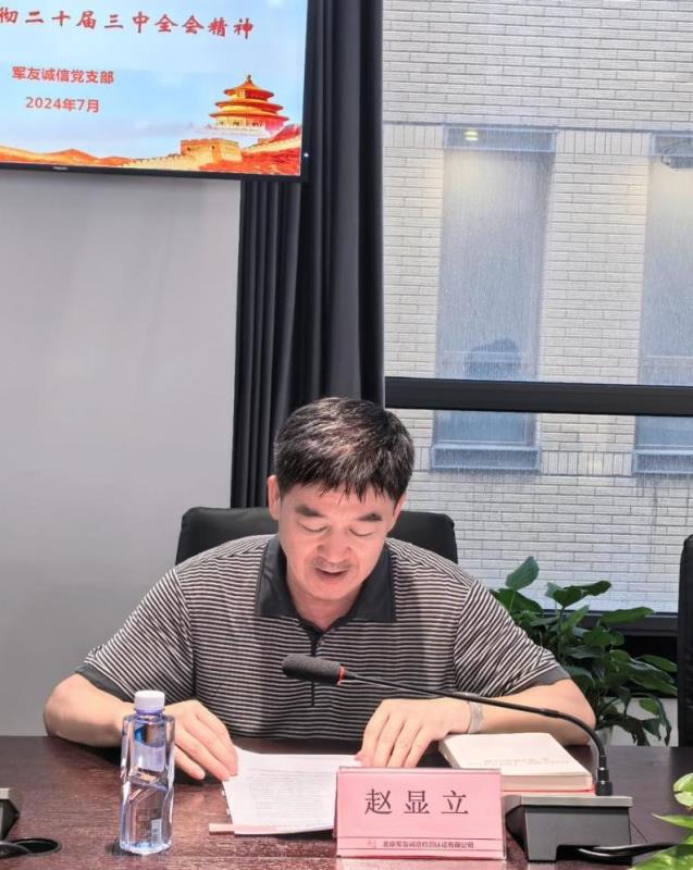 2024年7月30日,北京軍友誠信檢測認(rèn)證有限公司(以下簡稱軍友誠信)召開黨員大會,傳達(dá)學(xué)習(xí)貫徹黨的二十屆三中全會精神和有關(guān)文件精神,由公司書記趙顯立主持會議,公司全體黨員參加會議。